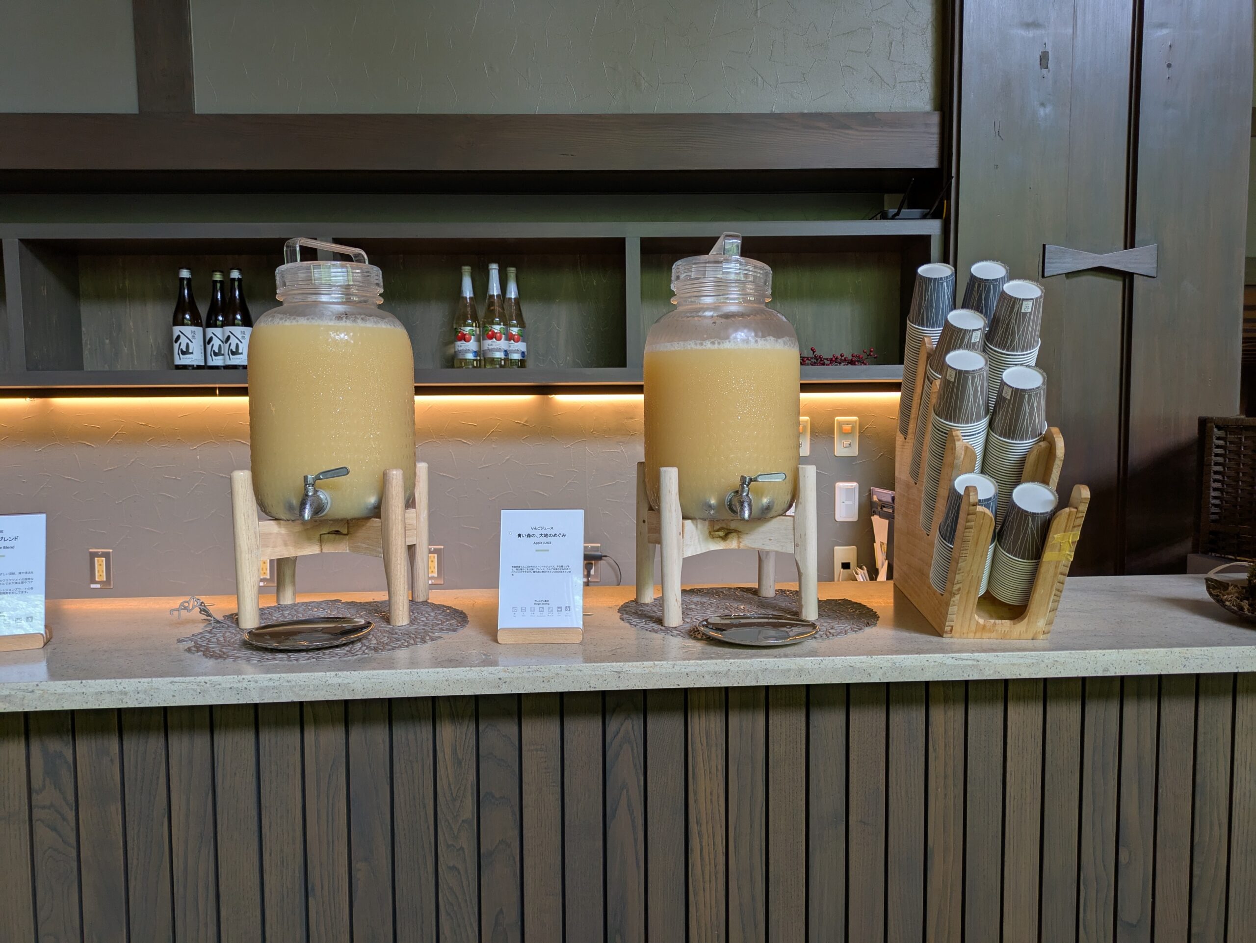 コーヒーやハーブティがセルフサービスでいつでも飲めました。ちょうど写真を撮った時はハーブティが売り切れてしまっていましたが、その後追加されていました。