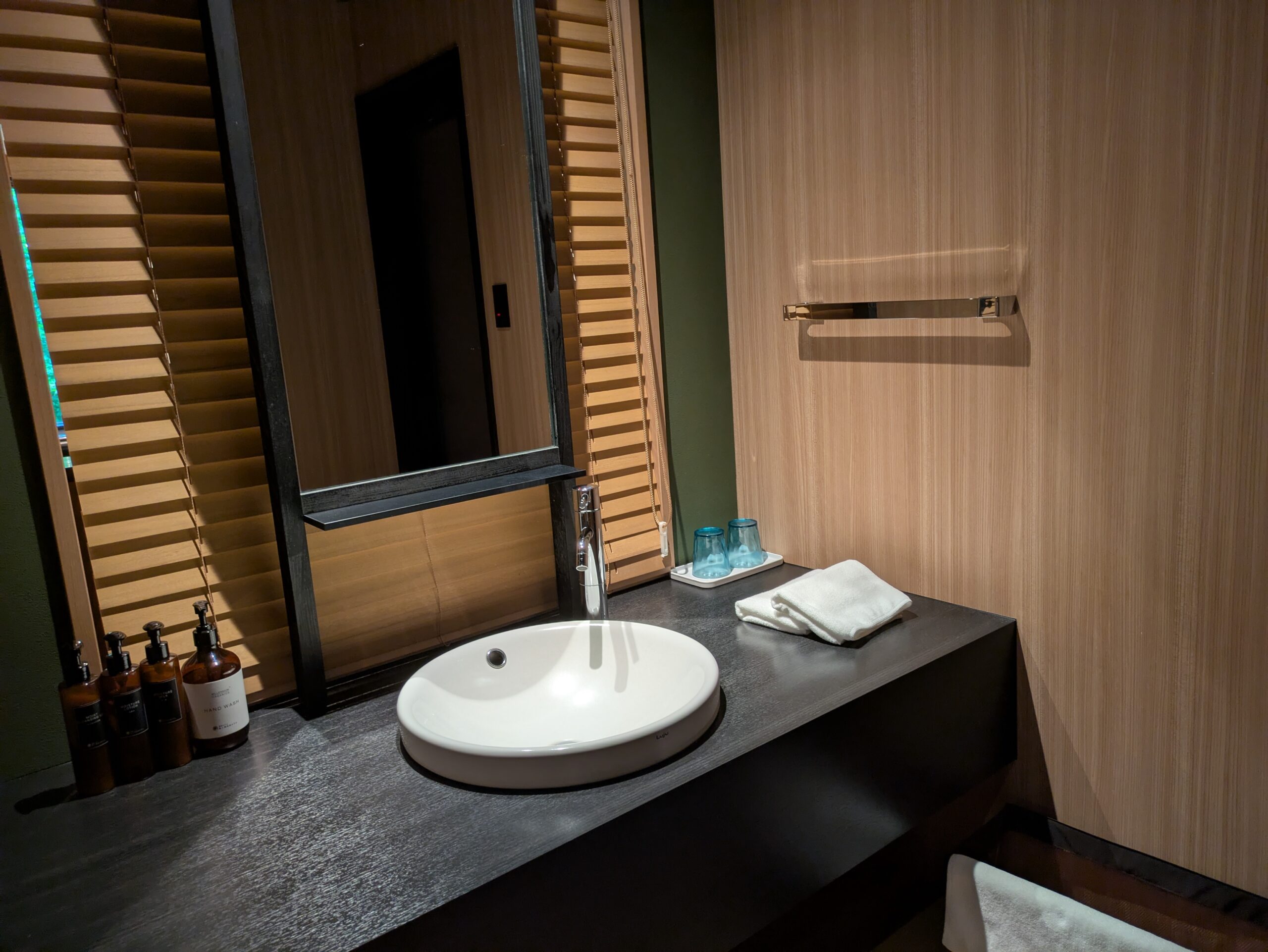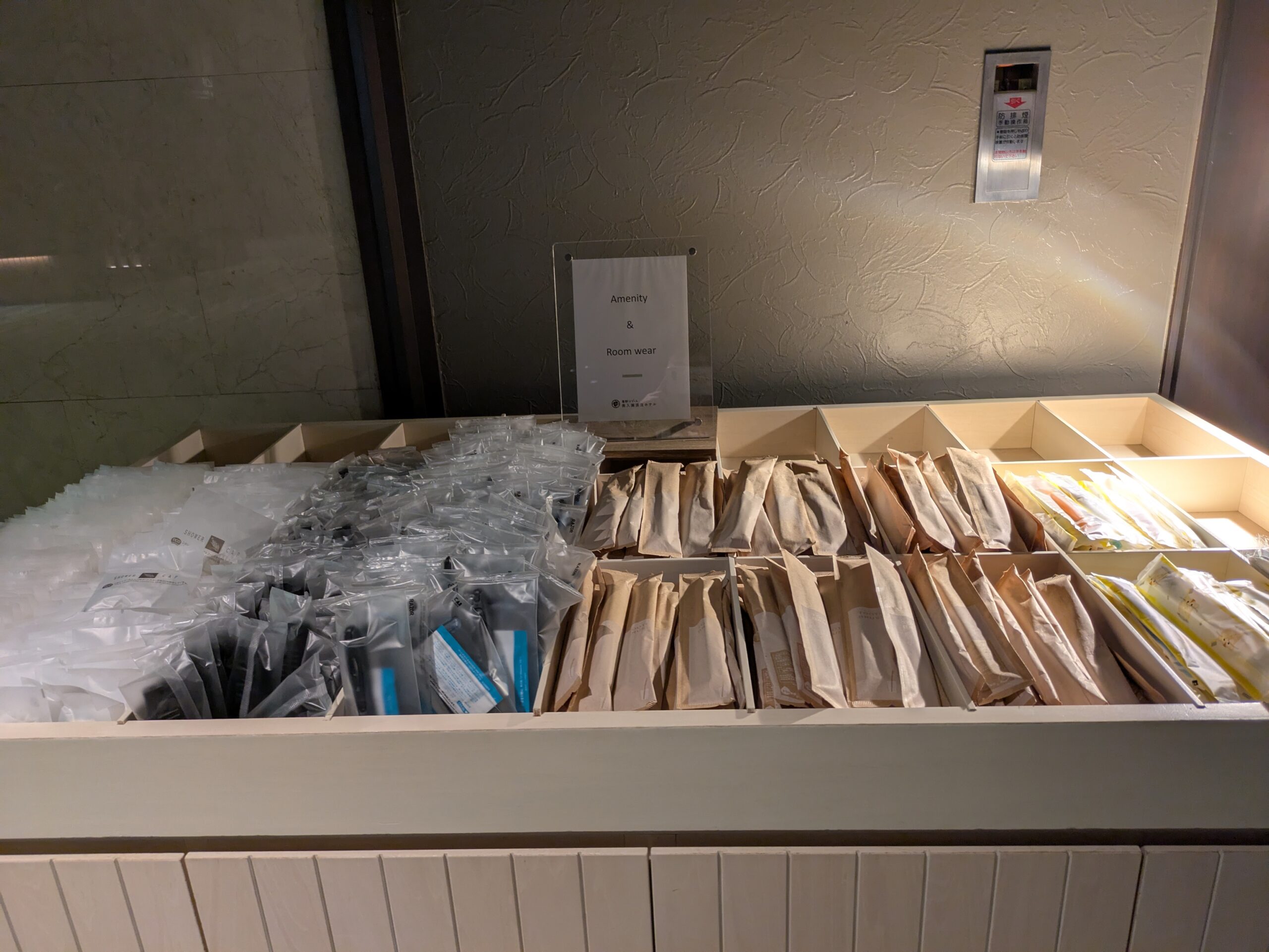 アメニティはお部屋には置いていないので、フロントの横から持っていくスタイルでした。