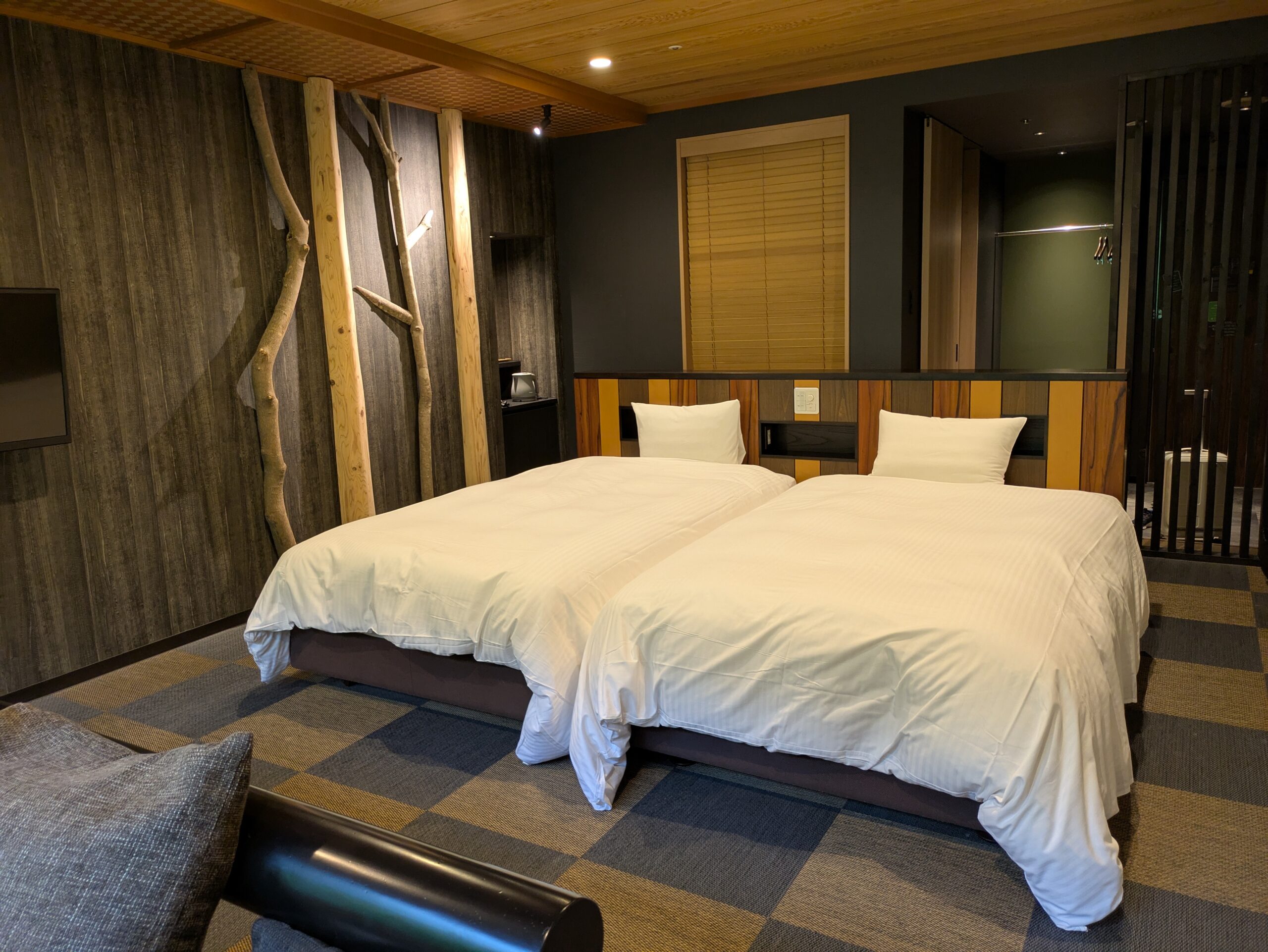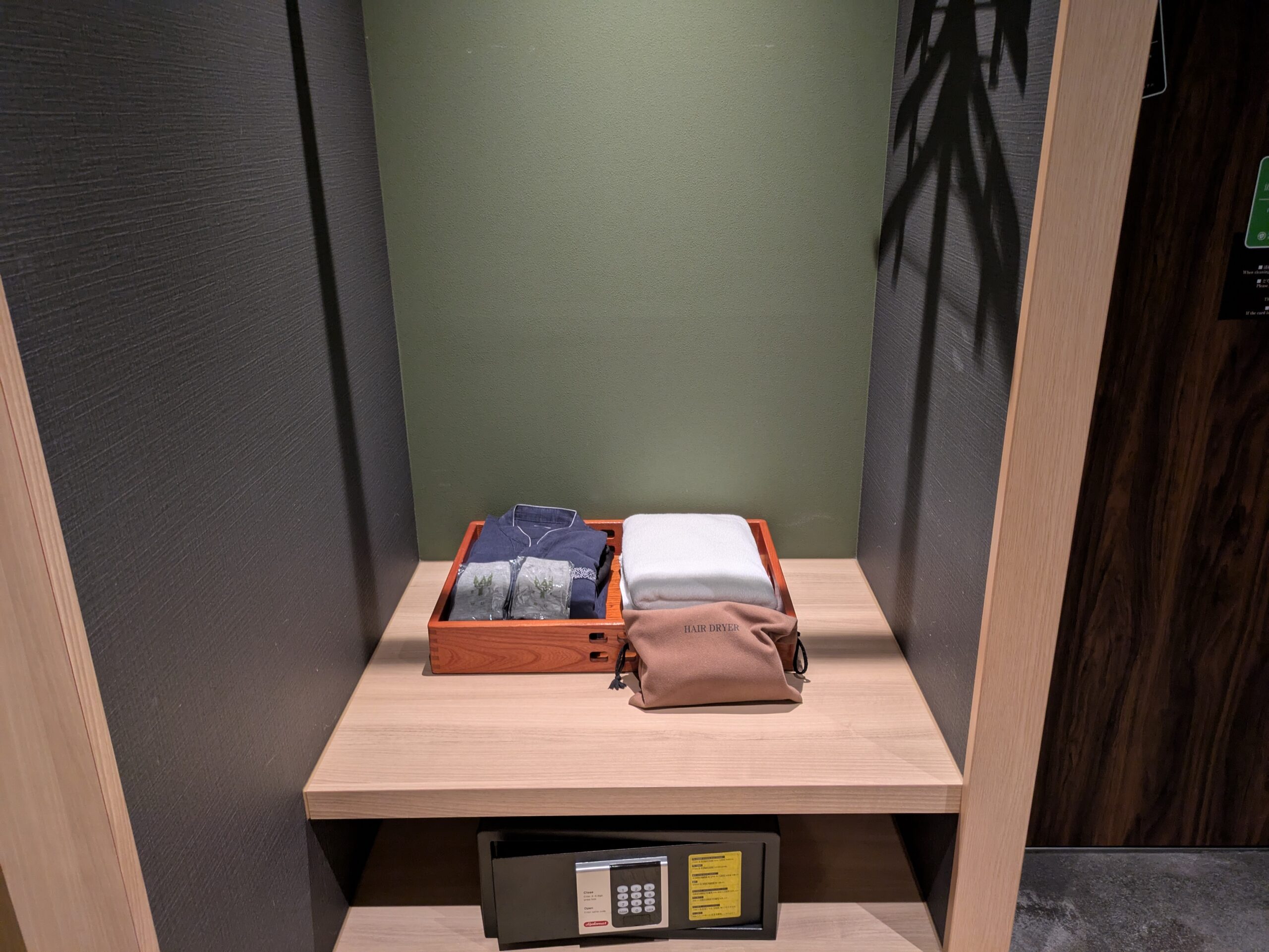 館内着やタオルなど。館内着が浴衣ではなく作務衣系なのが個人的には好きです。着心地も良かったです。
