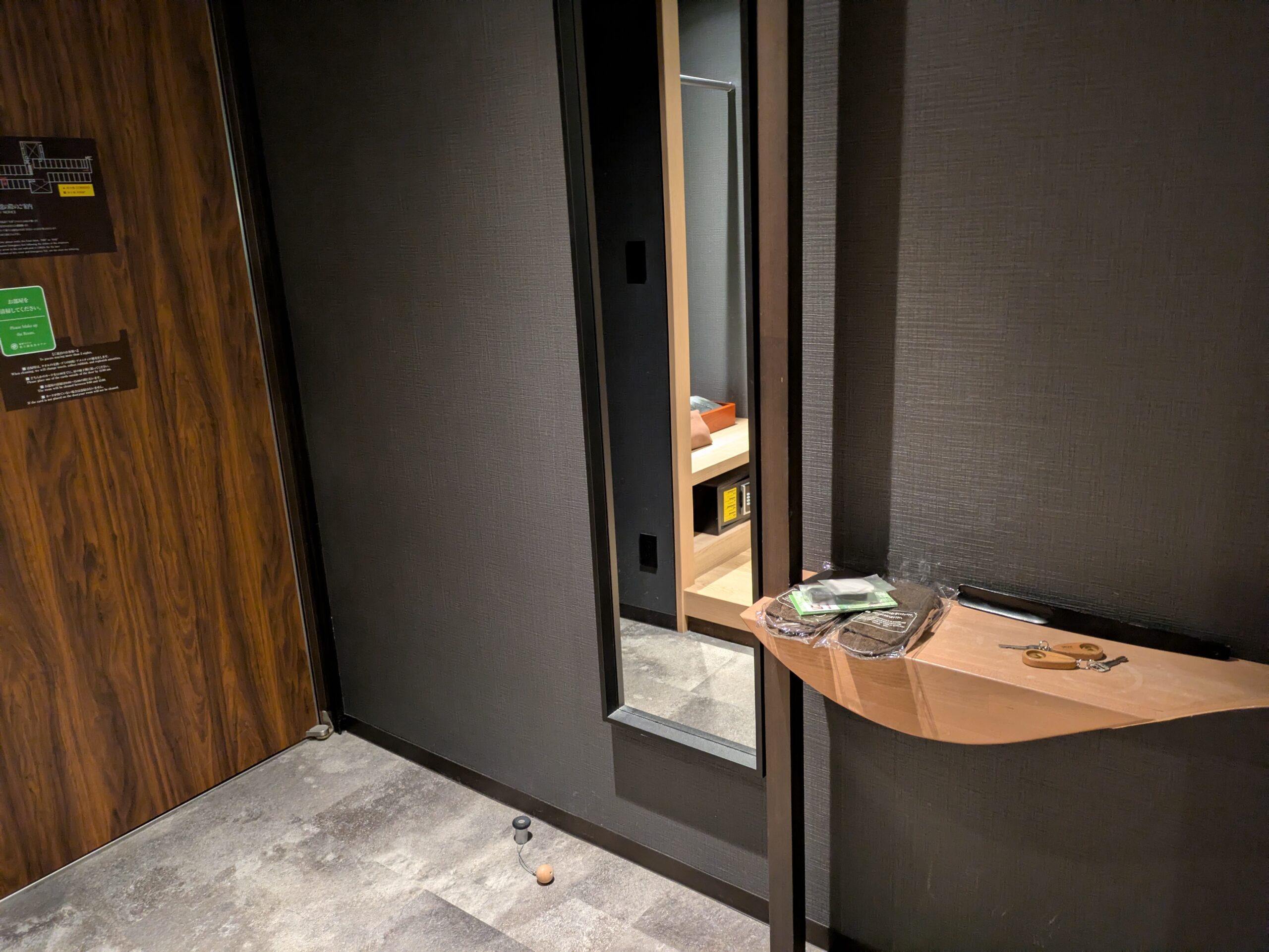 お部屋の入口。玄関部分が広かったです。靴を脱いであがるのがやっぱり寛げて良いですね。