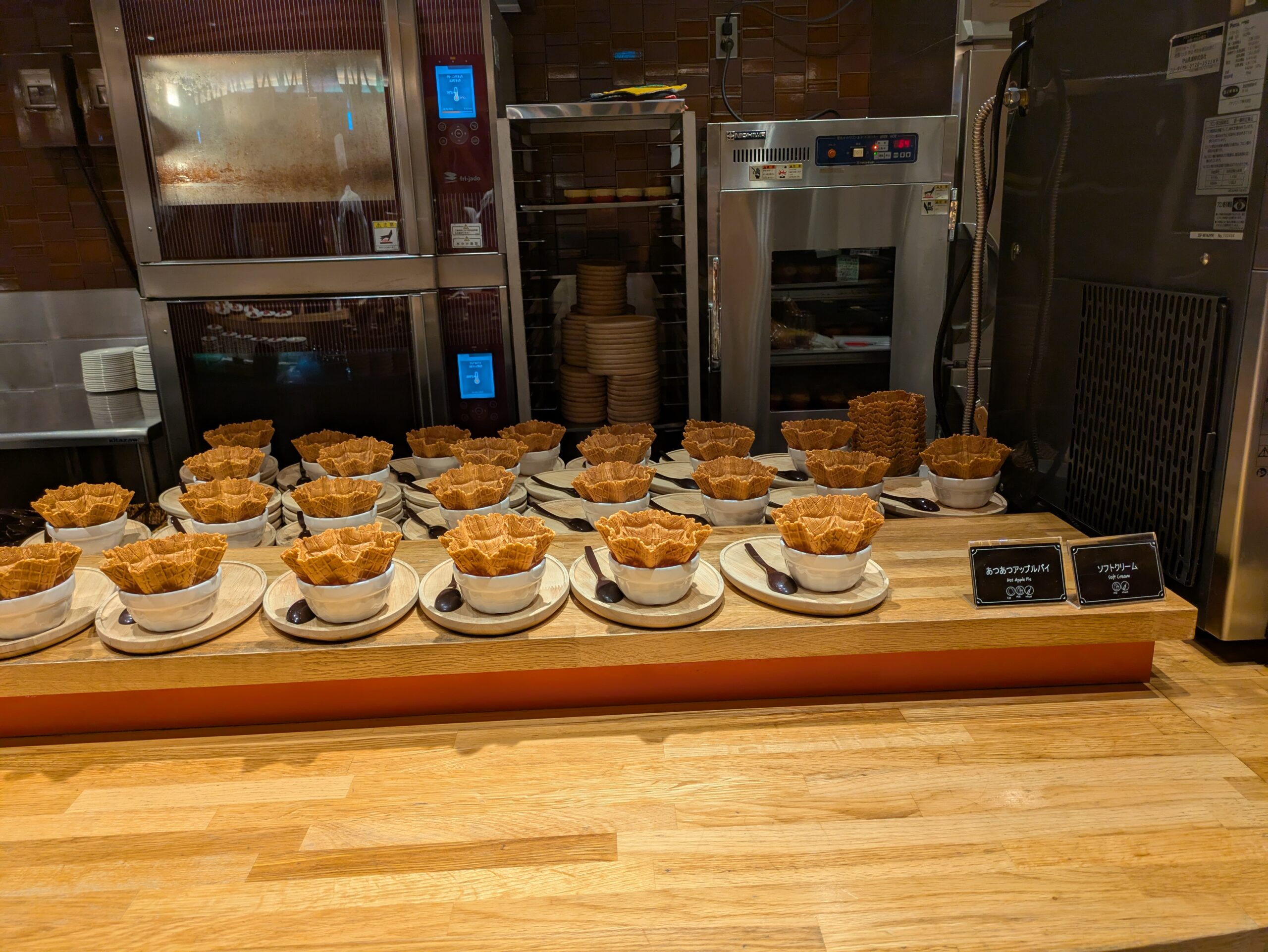 ちなみに写真のコーンは自分でソフトクリームをのせるカップです。美味しいけど、まあ1日目だけで良いかなという感じではありました。