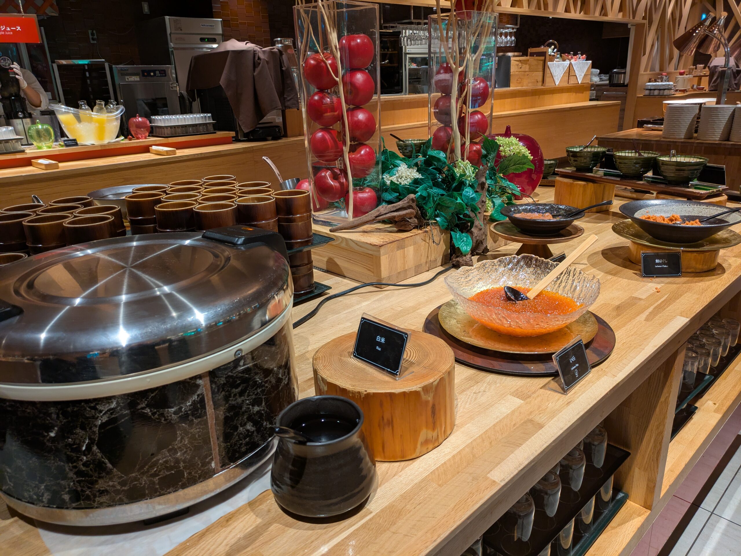 小学生の子供もいるので、夕食も朝食もビュッフェ「青森りんごキッチン」でいただきました。