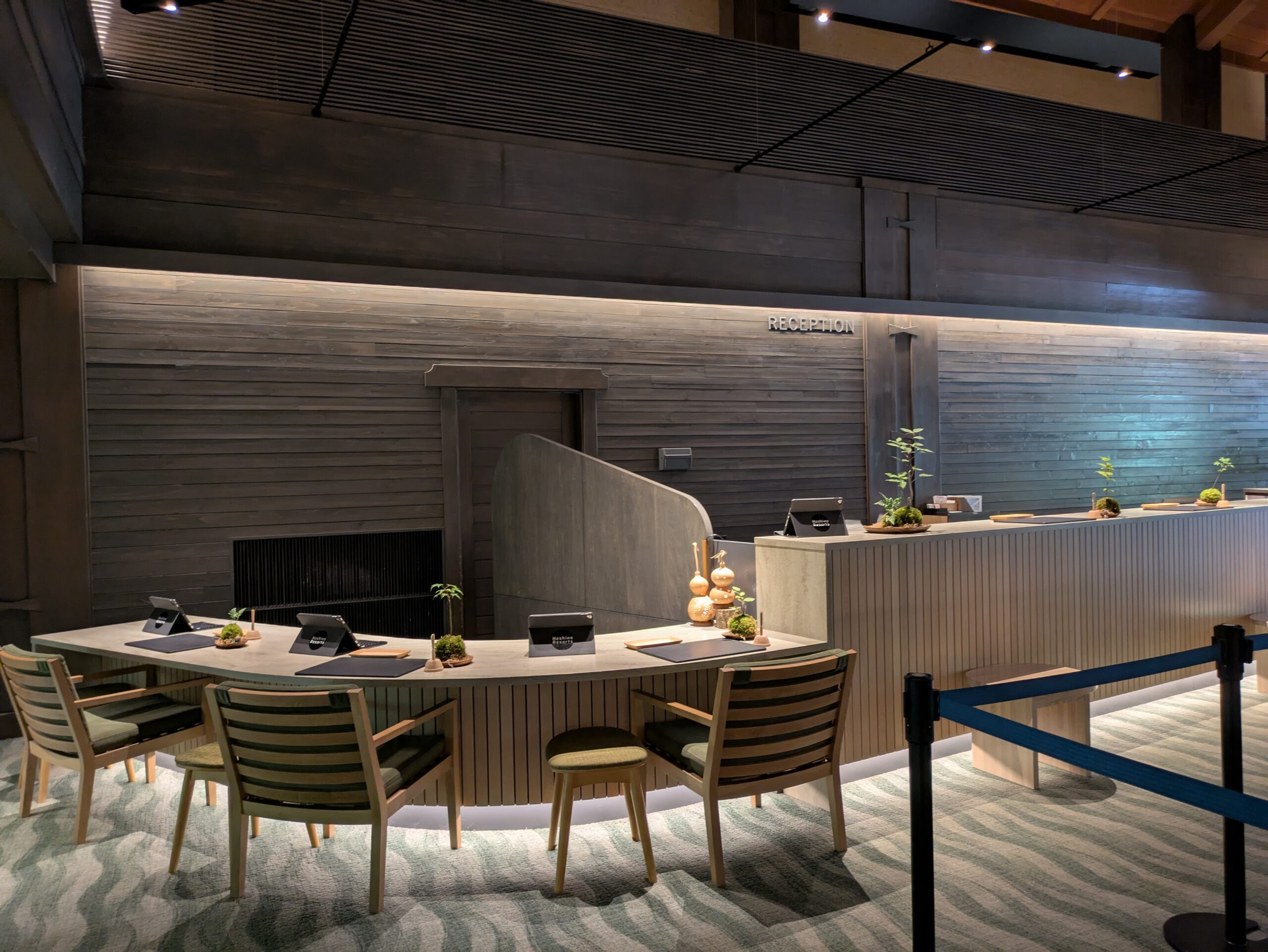 ロビー「森の神話」でウェルカムドリンクのサービスがあるので、ドリンクを飲んで待ちチェックインカウンターがすいてから手続きをする方が良いかもしれないですね。