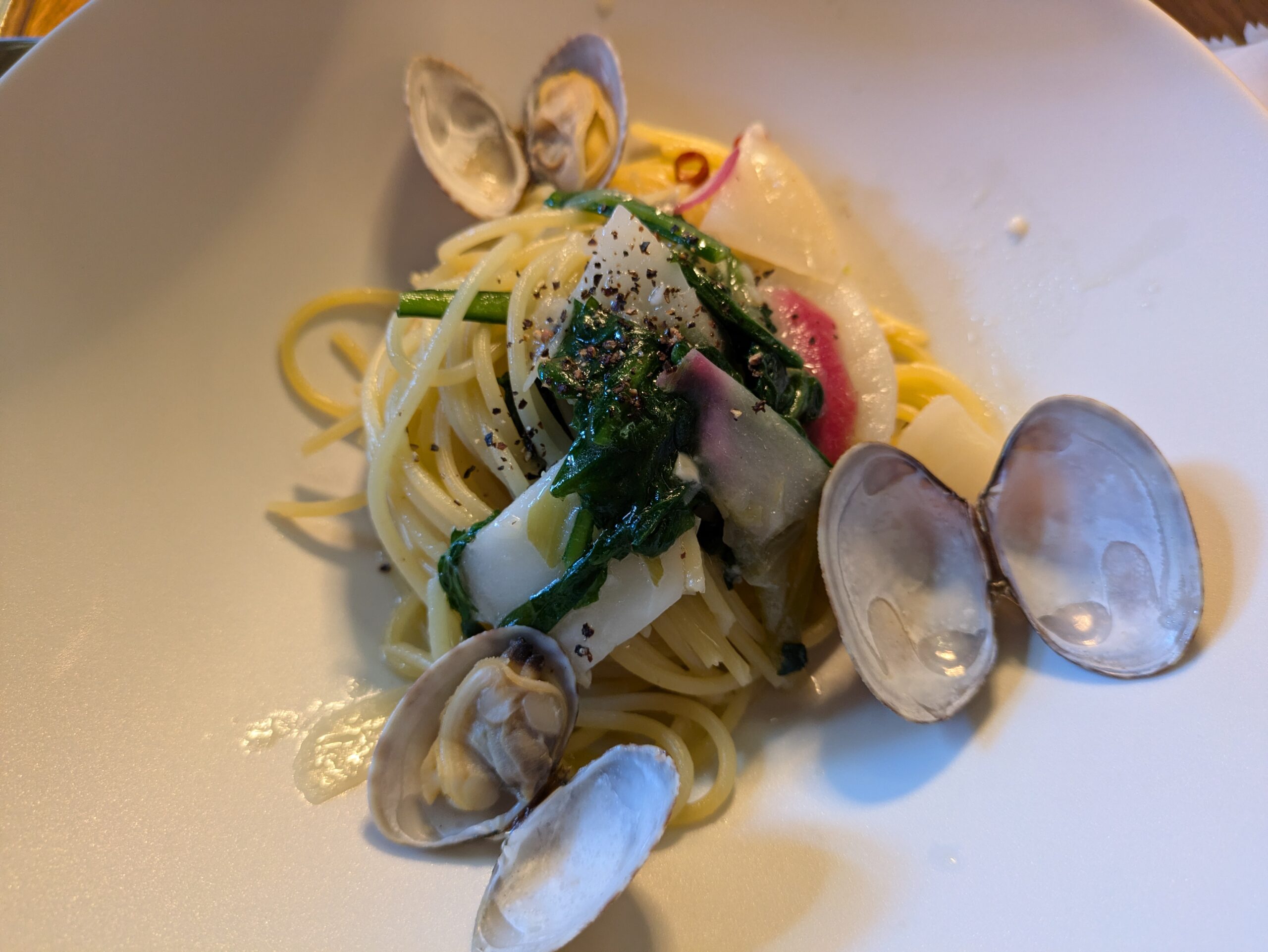 少量なので飽きずに食べられました。右のアサリは身がなくて殻だけでした笑